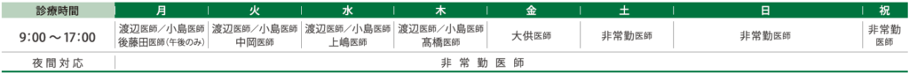 2026年4月からの担当医表を更新しました。診療日によって診療体制が異なりますので、お越しの際は最新の担当医表をご確認ください。